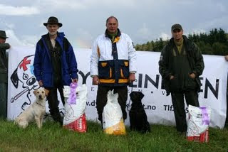 Så var det prøve på hjemmebane og jeg skulle starte med 4 hunder. Frekk i BK som endte på en 3. pr, noe hun helt klart ville gjort bedre - på en bedre dag. Denne dagen stemte det ikke for oss. Selv om vi ble best i denne klassen med Otelia med en 2 pr. så gjorde jeg to store førerfeil med Tara og Teak som begge fikk 3 pr. Slik er det bare når en er sent oppe om natten så jeg tar feilene på min kappe. Men det er ny prøve i morgen og jeg skal gå tidlig til køys i dag. Samtidig gleder det meg at Faks Vanja (Emma) viste seg fra sin beste side og endte opp med 1 pr. med Hederspremie Det vil si at det var to fra mitt oppdrett som vant hver sin klasse denne dagen. Gratulerer også Rosie og Frank med 1 pr. og Hederspremie denne dagen.